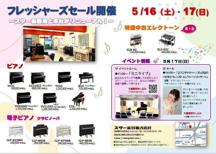 スター楽器池上本社1Fにてフレッシャーズセール開催