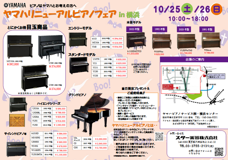 スター楽器ではヤマハピアノサービス横浜センターと協賛し、ヤマハリニューアルピアノフェアを開催いたします。