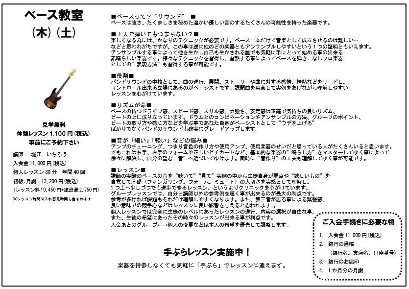 スター楽器武蔵新田センターのエレキベースのレッスンについてのご紹介です。